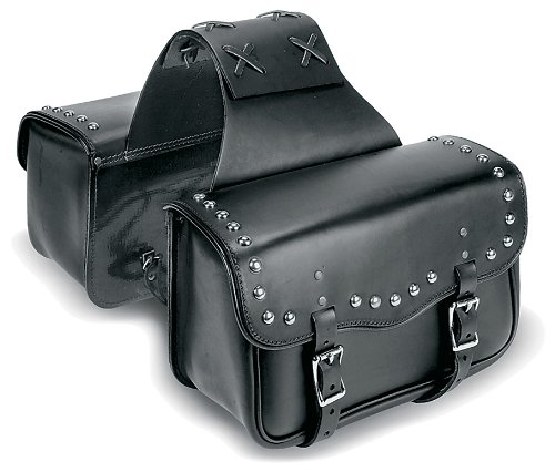 #Carroll Heavy - Duty Throw - Over Leather Saddlebags... ready for carefree, easy riding ahead! Invest ink great gear carriers at a reasonable Guide price! Great for bikes with shot gun pipes! At only 8 1/2" tall, it features Carroll's Easy Buckle system. It's all here: Premium 9/10 oz. leather; Heavy nylon thread; Riveted stress points; Brass chrome plated buckles; 1,428 cubic inches of storage space; Dimensions: 14" w. x 6" d. x 8 1/2 "h.; Made in the USA.; Easy packing up for easy going on the rides... order now! Carroll Heavy-Duty Throw-Over Saddlebags, Plain